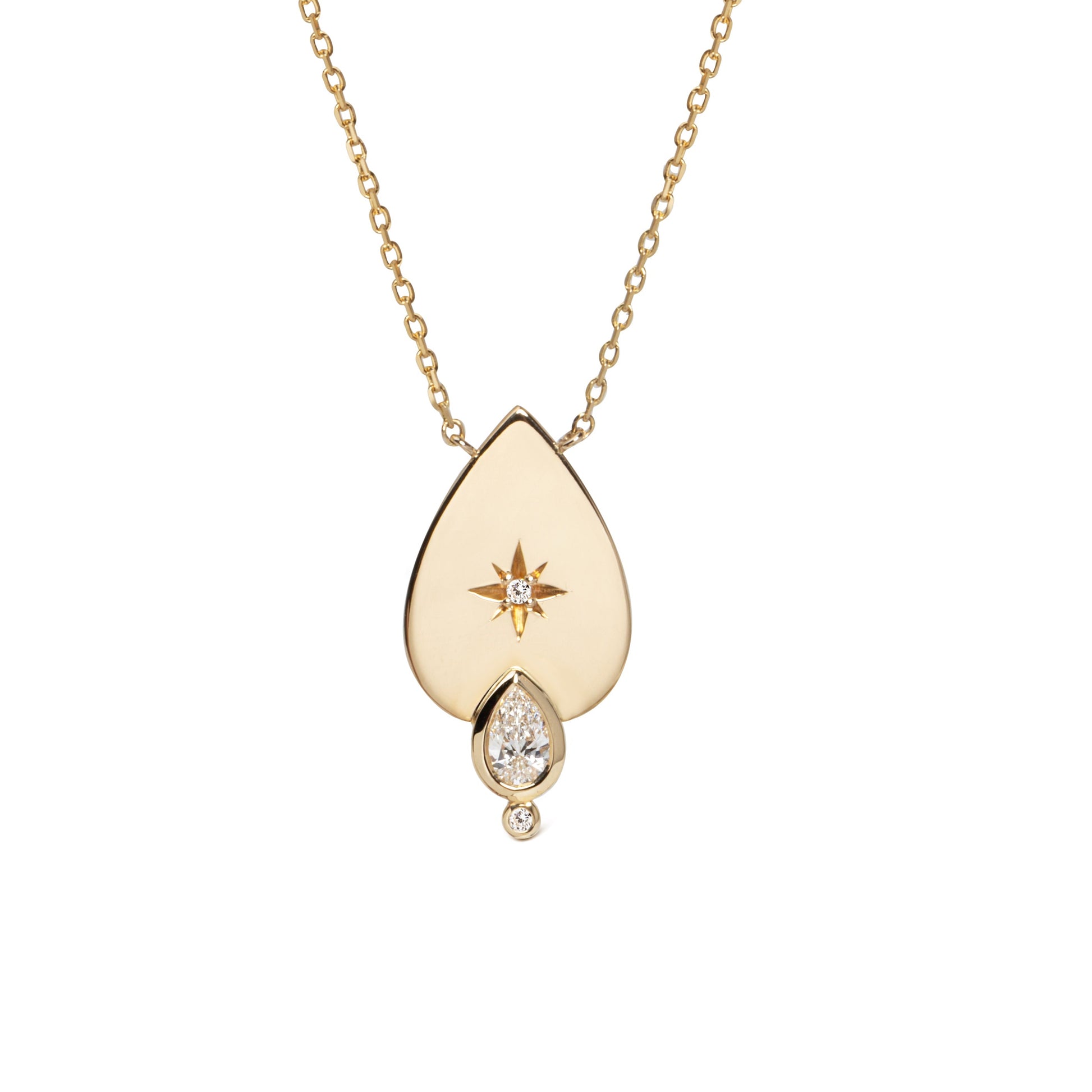 14K Gold Big Drop-shaped Diamond Star Necklace with Diamond