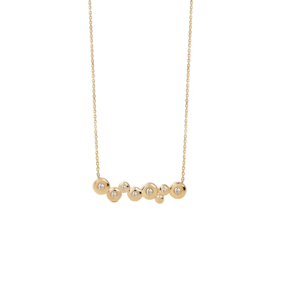 Sophisticated yet flirtatious, this fine piece of Jewellery will Rejuvenate your look. Each “bubble” contains a world of possibilities and dreams to find the marvel of life. Available in Yellow/White/Rose Gold.
