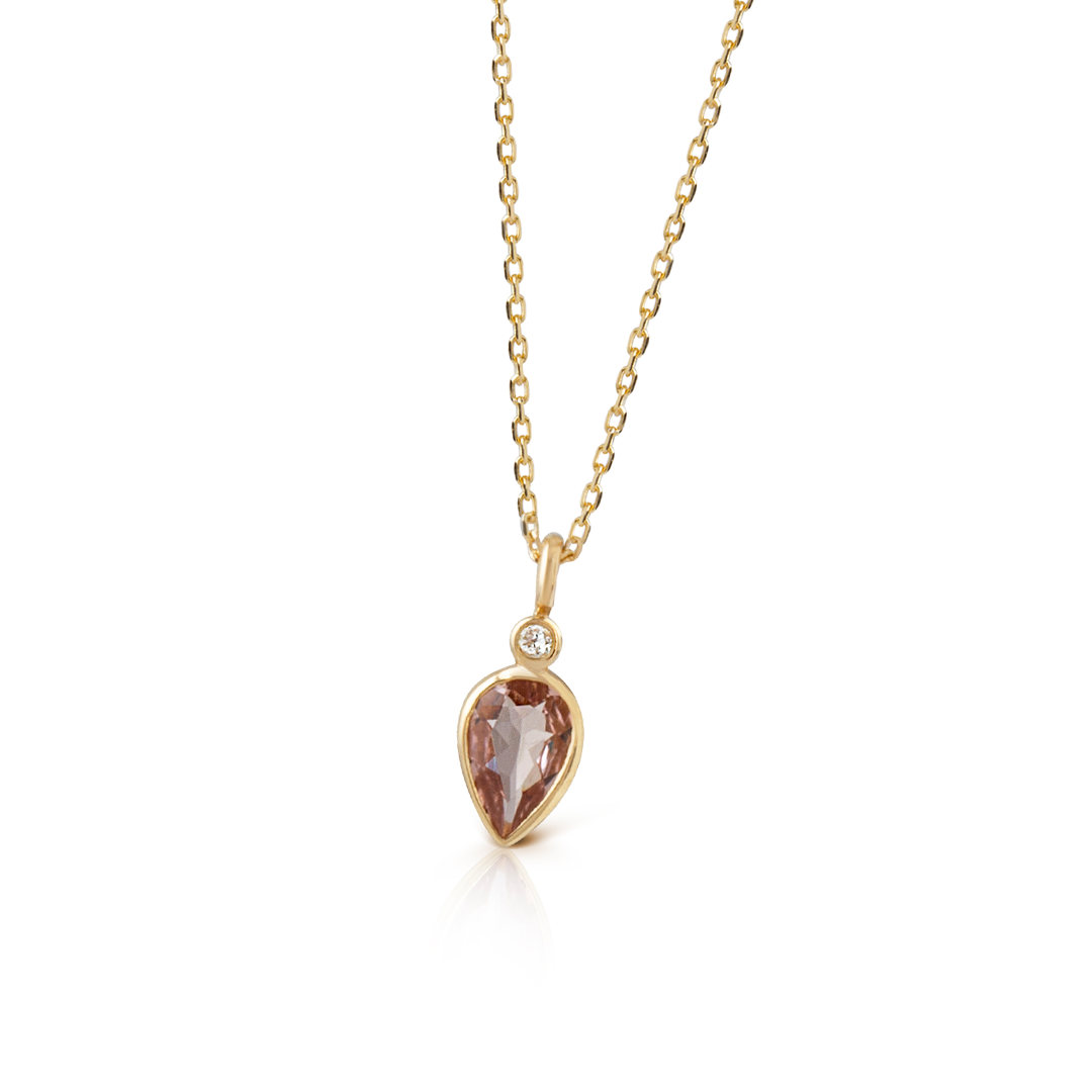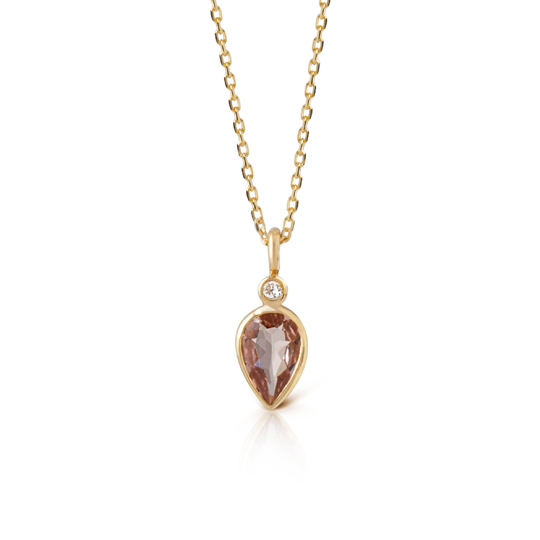 14K Gold Pear Shaped Pink Tourmaline and Diamond Necklace