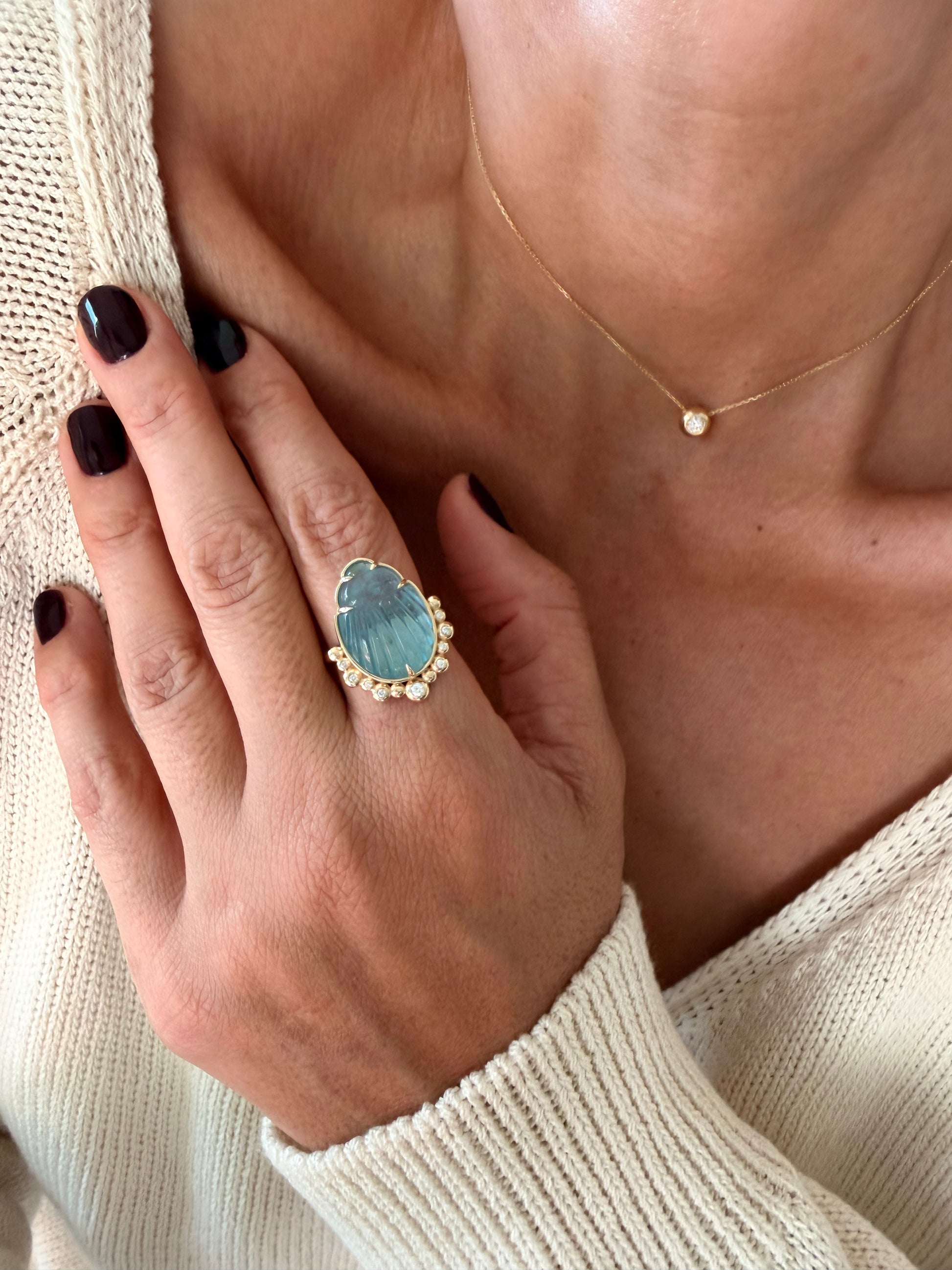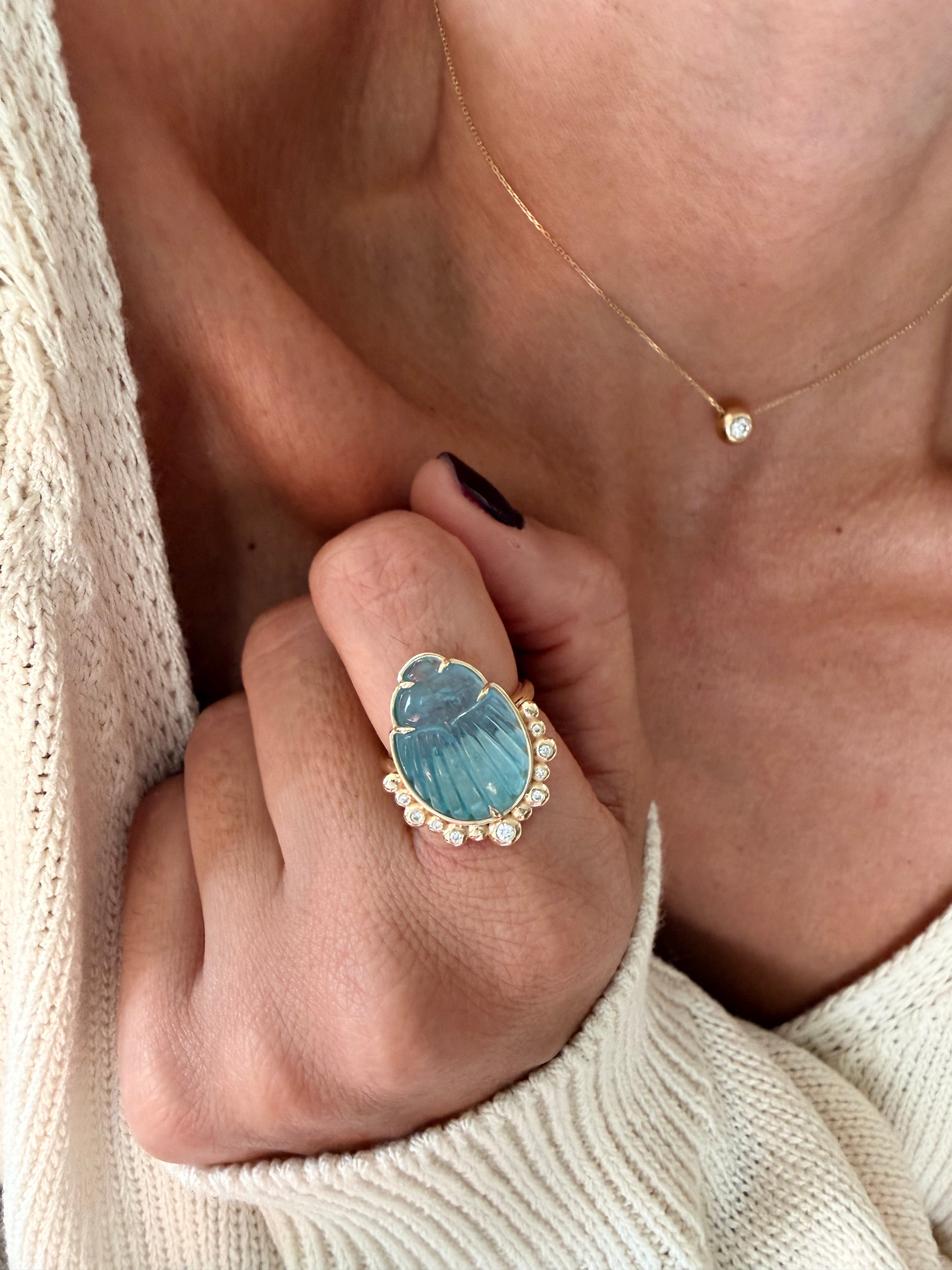 14K Gold Scarab Aquamarine Ring with Diamonds