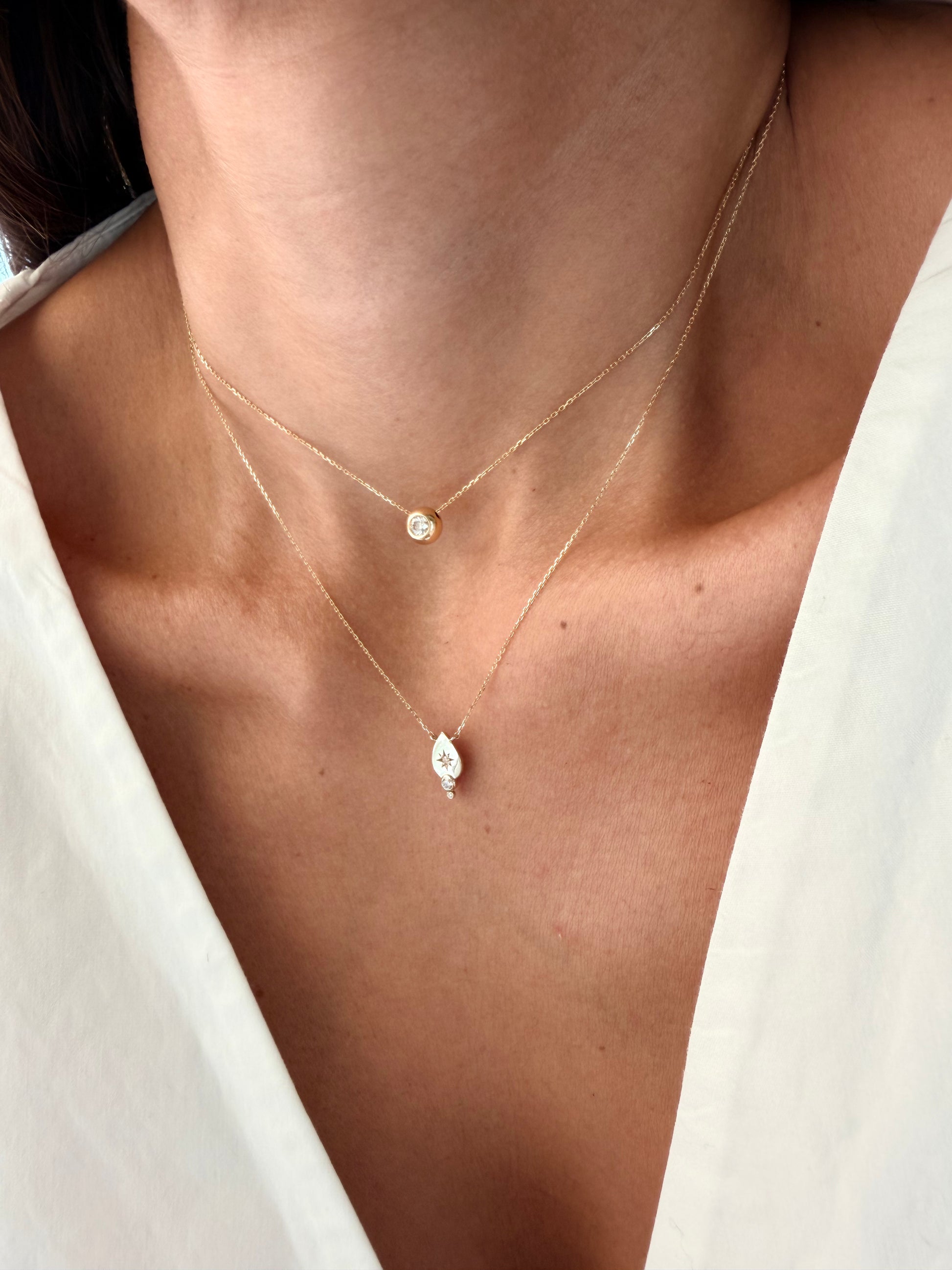 14K Gold Small Drop-shaped Diamond Star Necklace