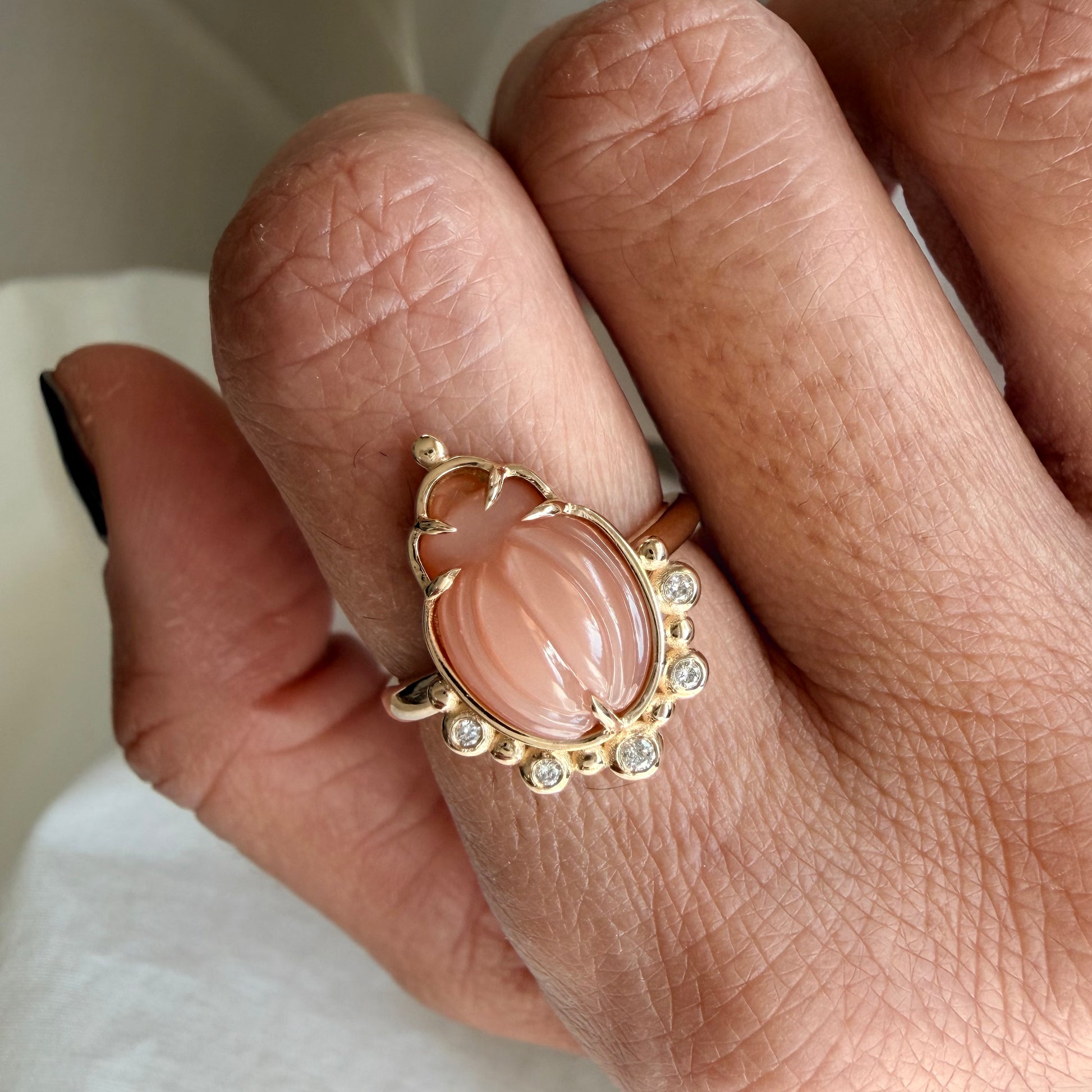 14K Gold Small Scarab Moonstone Ring with Diamonds