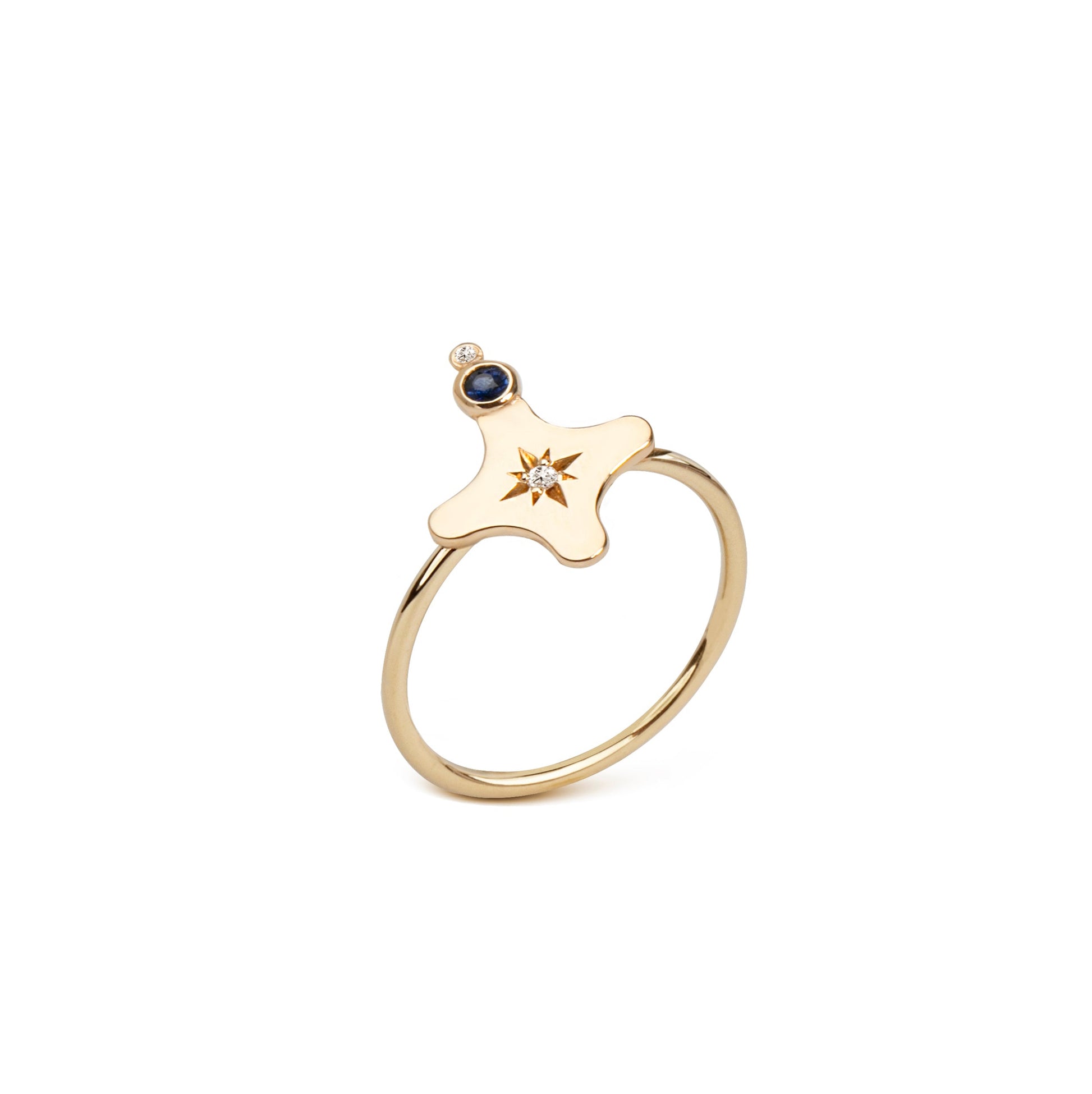 14K Gold Small Star-Shaped Diamond Star Ring with Sapphire