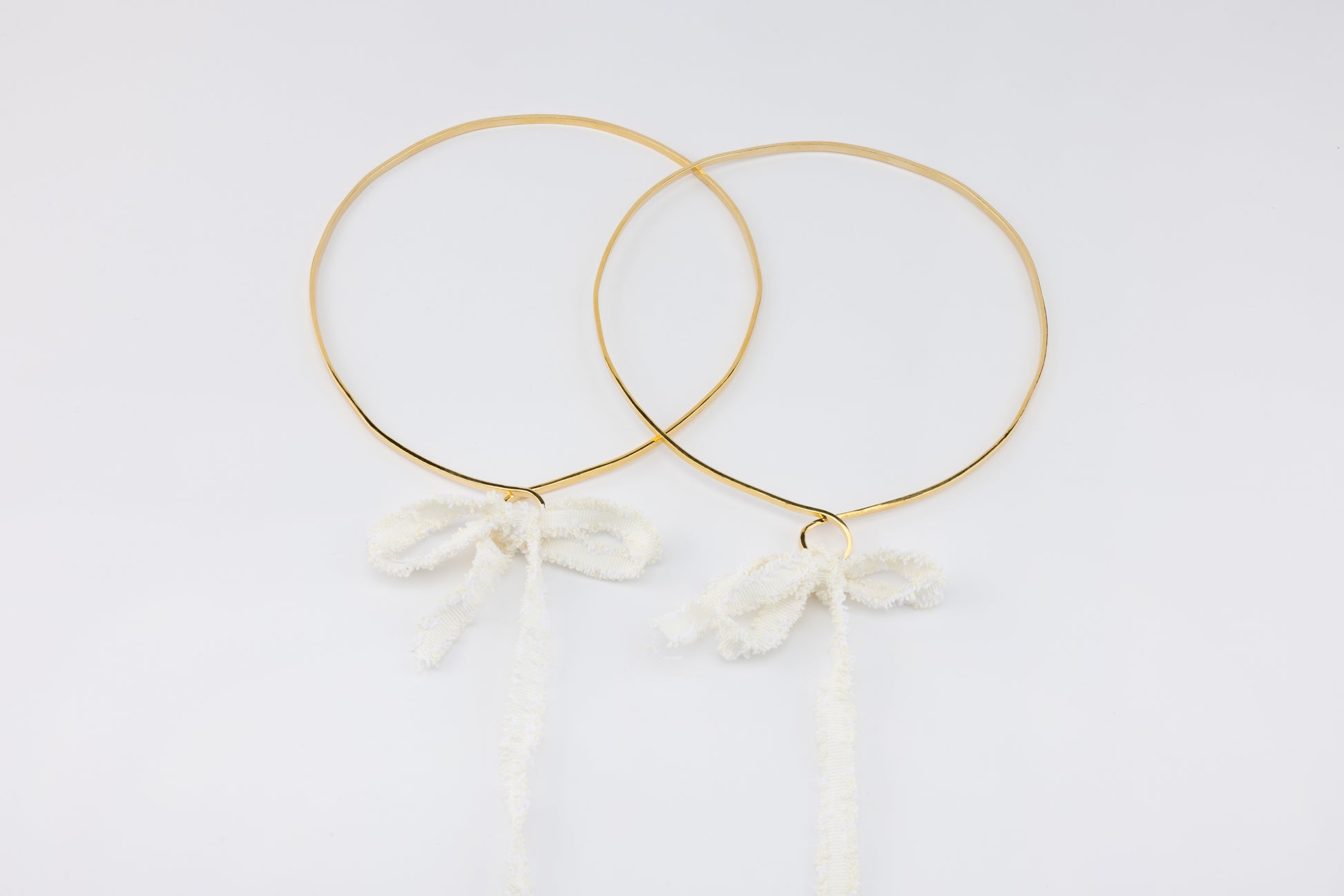 Elegantly crafted from gold-plated bronze, these flat-shaped wedding crowns offer a sleek, modern design that exudes simplicity and sophistication. Joined with soft, white textured ribbons, the flat shape creates a smooth, refined look, symbolizing the harmony and balance of marriage. With their timeless gold finish, these crowns bring a touch of understated elegance to your wedding day.