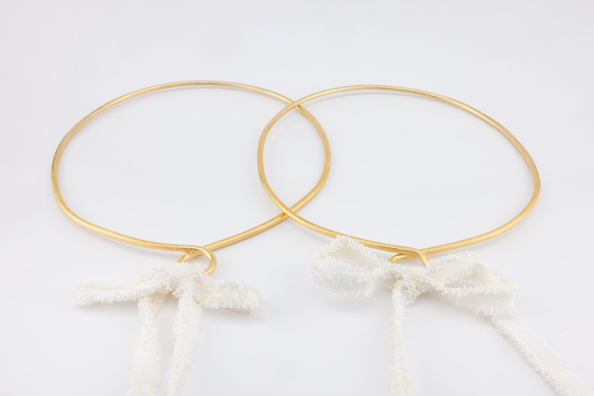 Designed with bold elegance, these thick diamond-cut wedding crowns are crafted from gold-plated bronze and feature a stunning diamond-cut finish that reflects light beautifully. Joined with soft, white textured ribbons, the thick design exudes strength and sophistication, symbolizing the solid foundation of your marriage. The radiant gold and intricate diamond cuts bring a luxurious, timeless appeal to your wedding day.