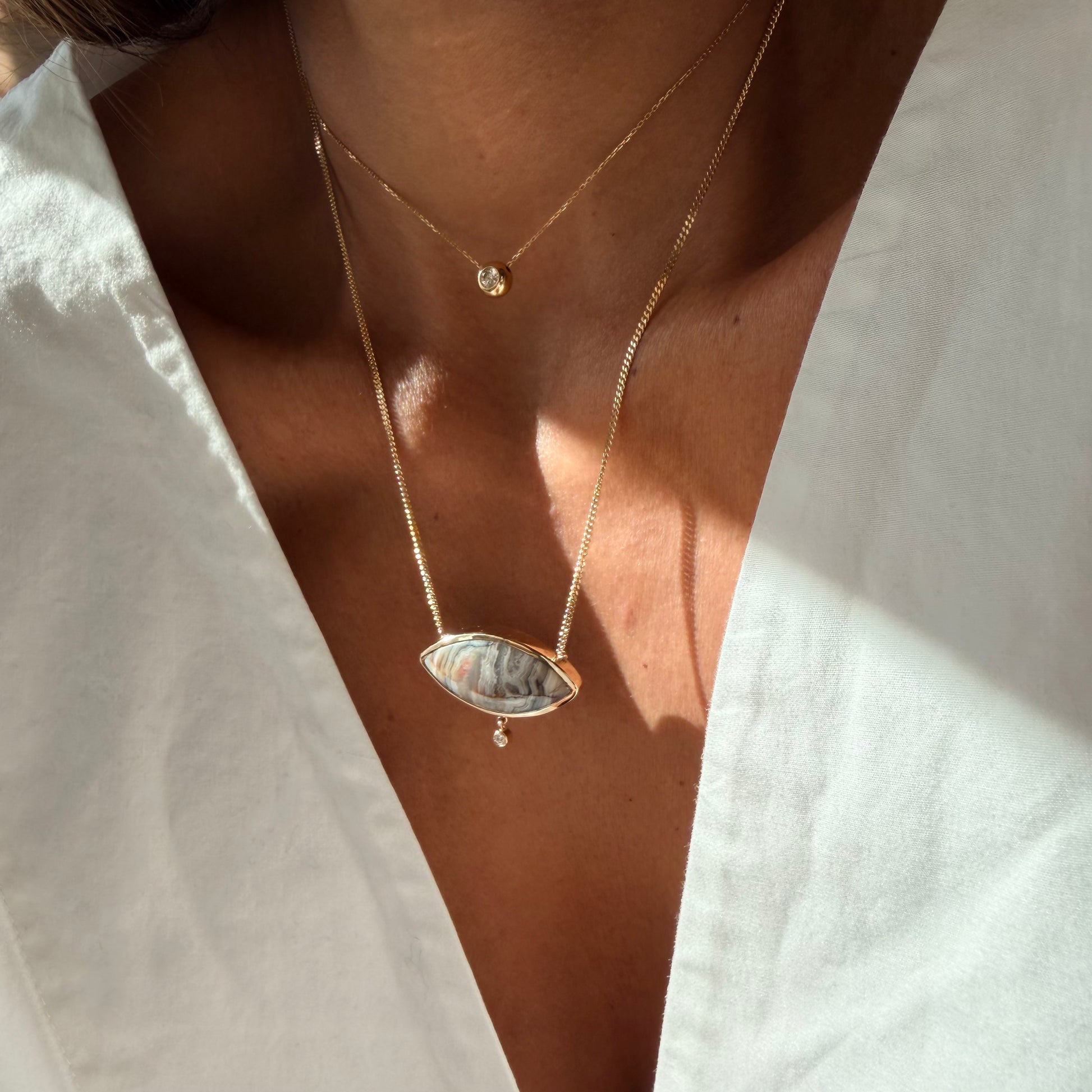 Eye of Nature — Lace Agate & Diamond Necklace