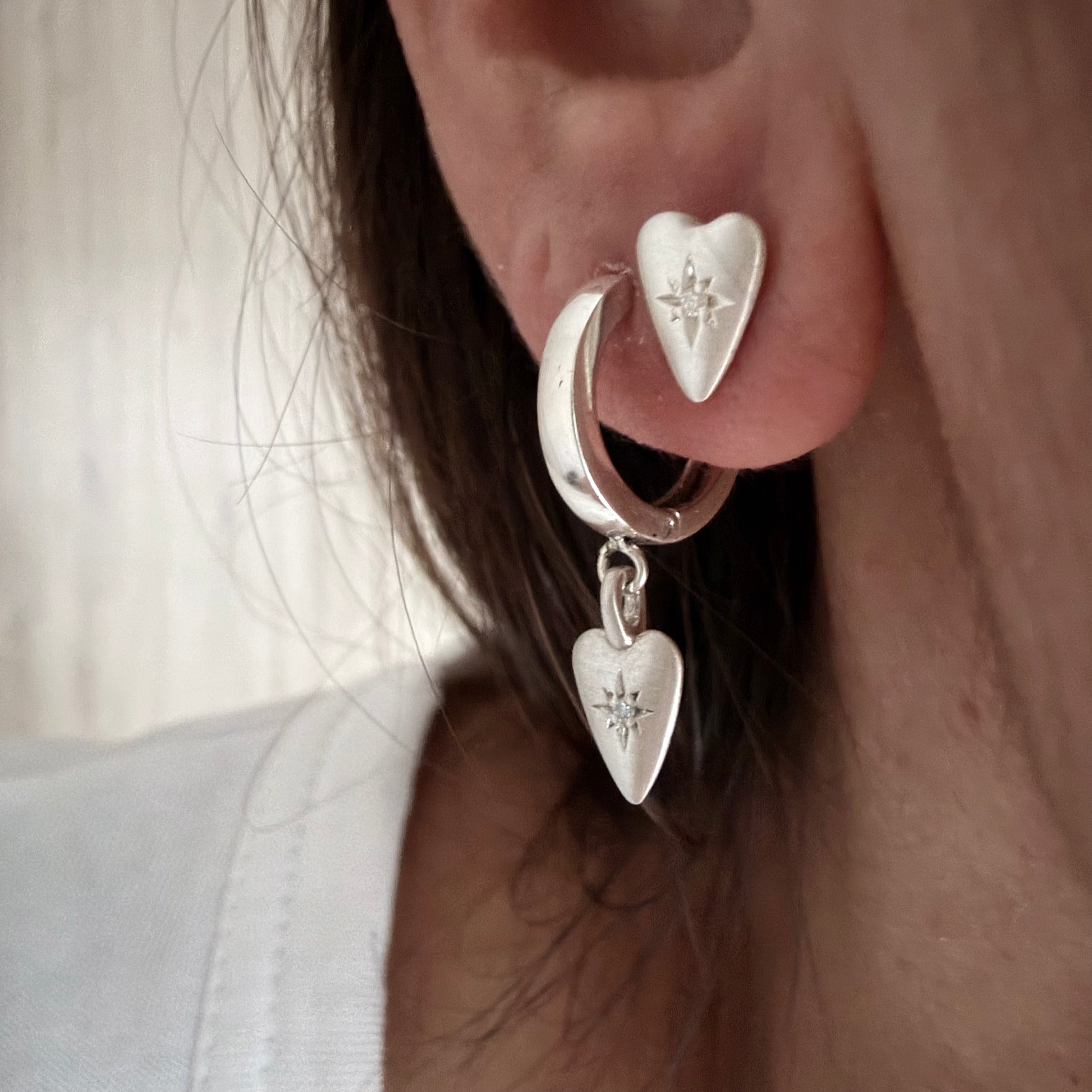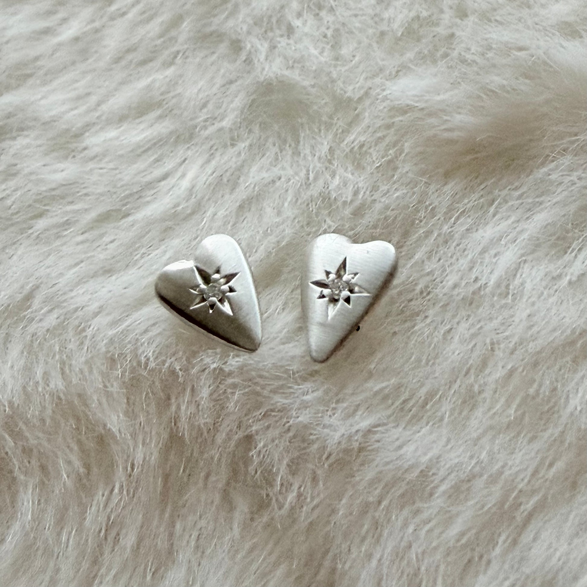 Silver Diamond Heart Stud Earrings (Smal)