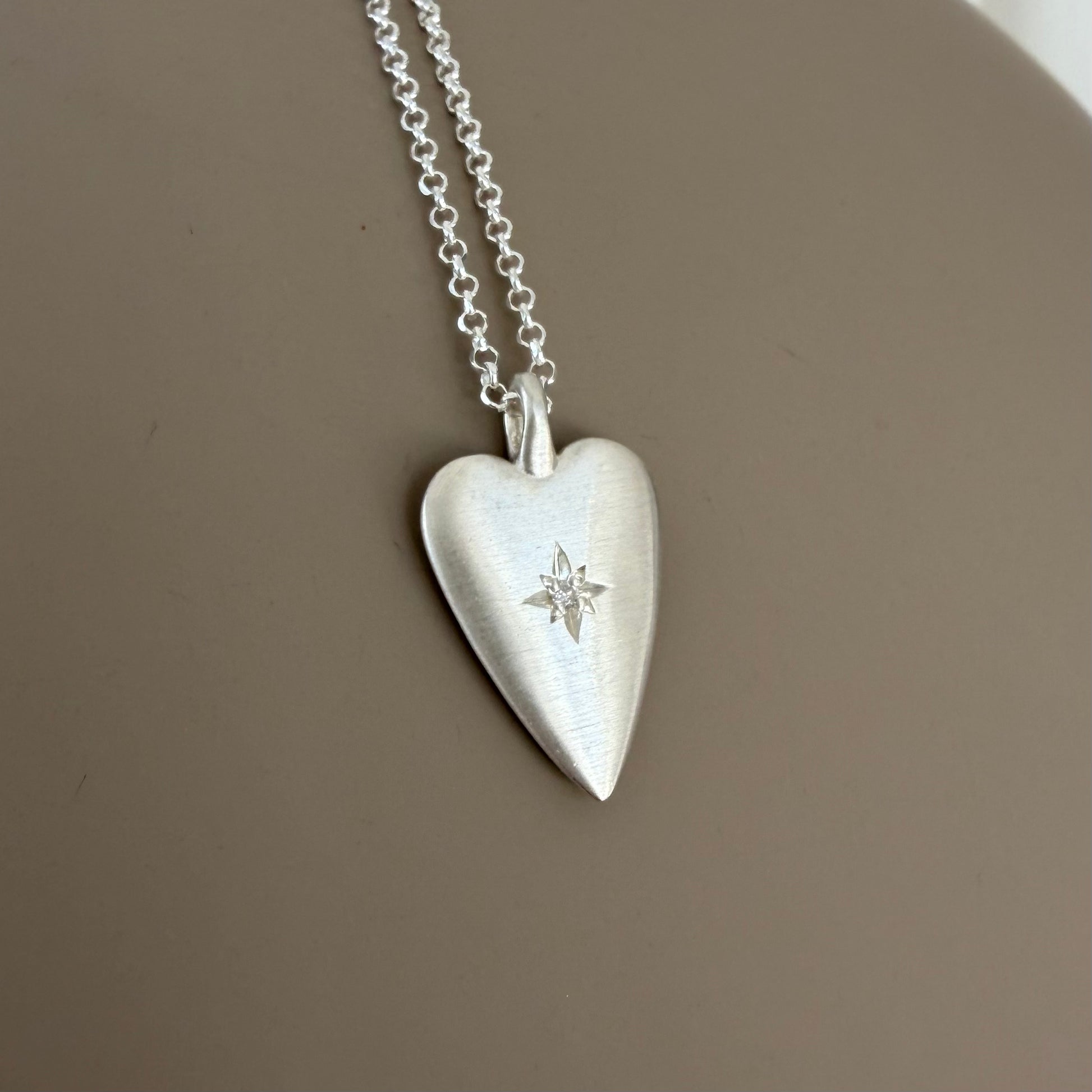Silver Heart Diamond Star Necklace (Big)